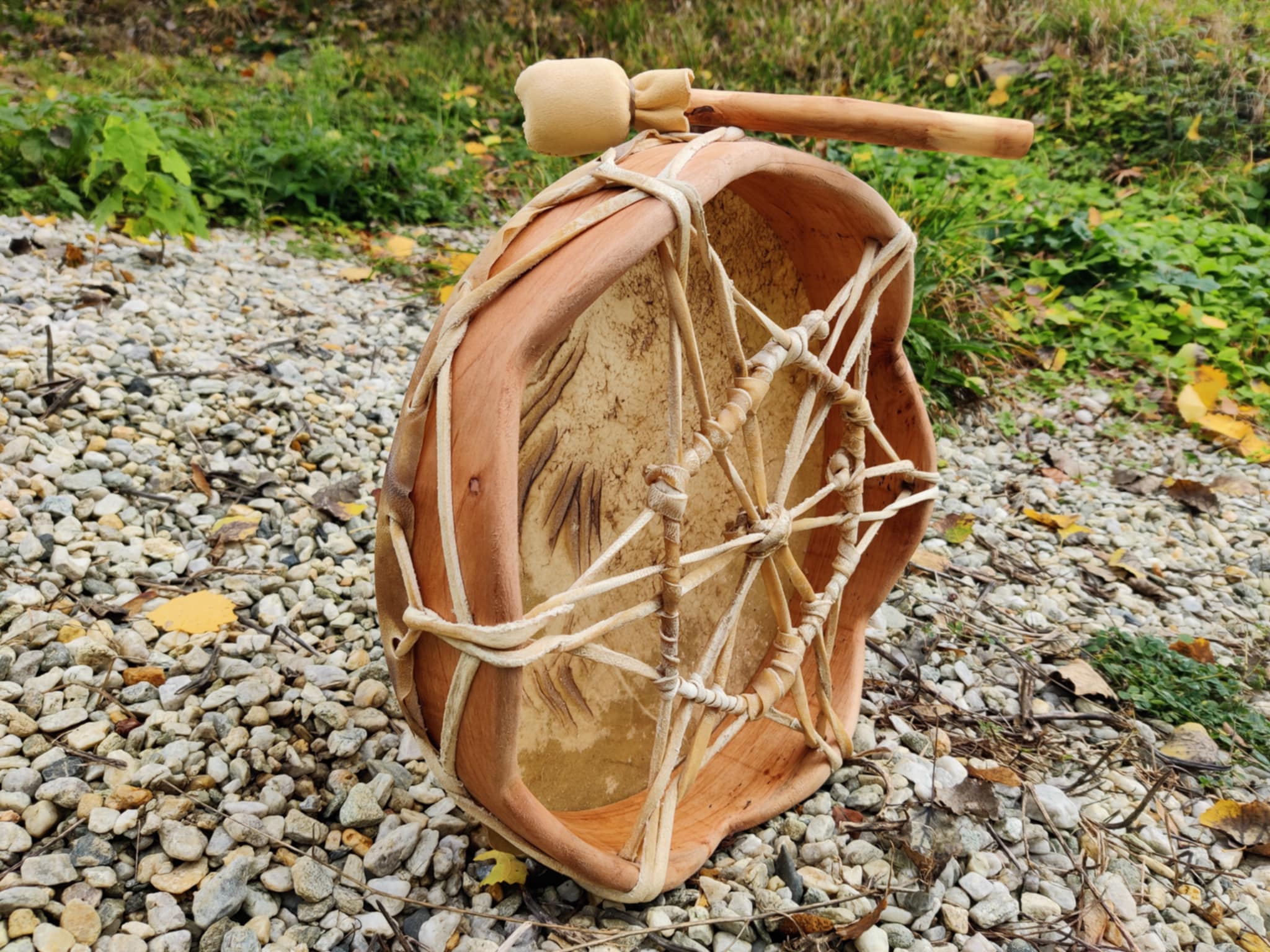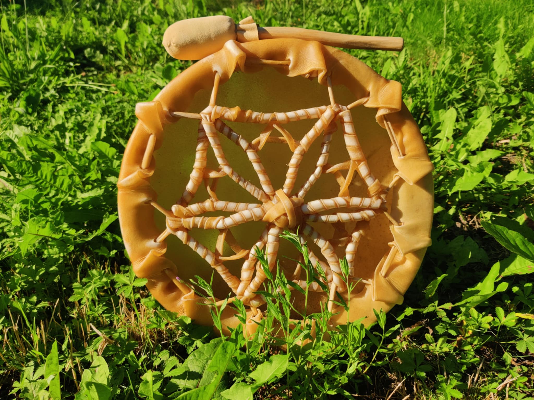 Jedinečný ultralehký buben z jelení kůže… barvený šťávou z černého jeřábu